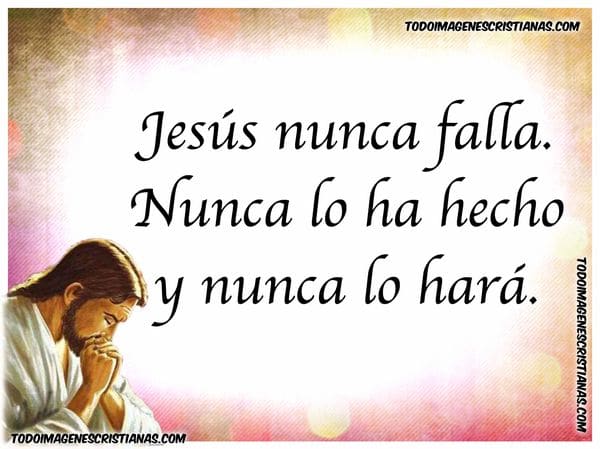 Hemos creado 10 imágenes hermosas con distintos fondos y frases muy lindas que nos hablan de que Jesús nunca falla, nunca lo ha hecho y nunca lo va a hacer. Estas imágenes son muy lindas para enviárselas a personas que estén pasando por un mail momento, que estén desanimadas o que necesiten un poco de aliento para seguir adelante.