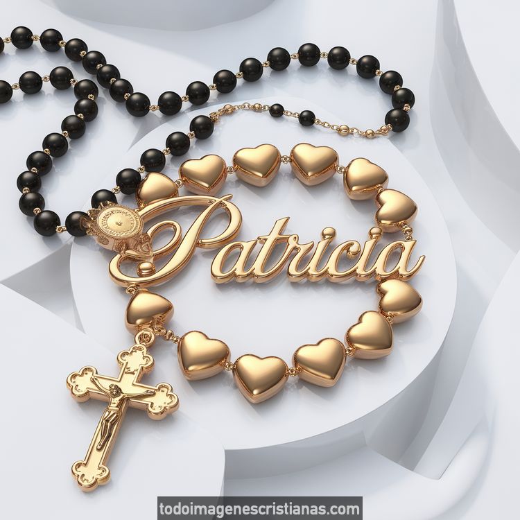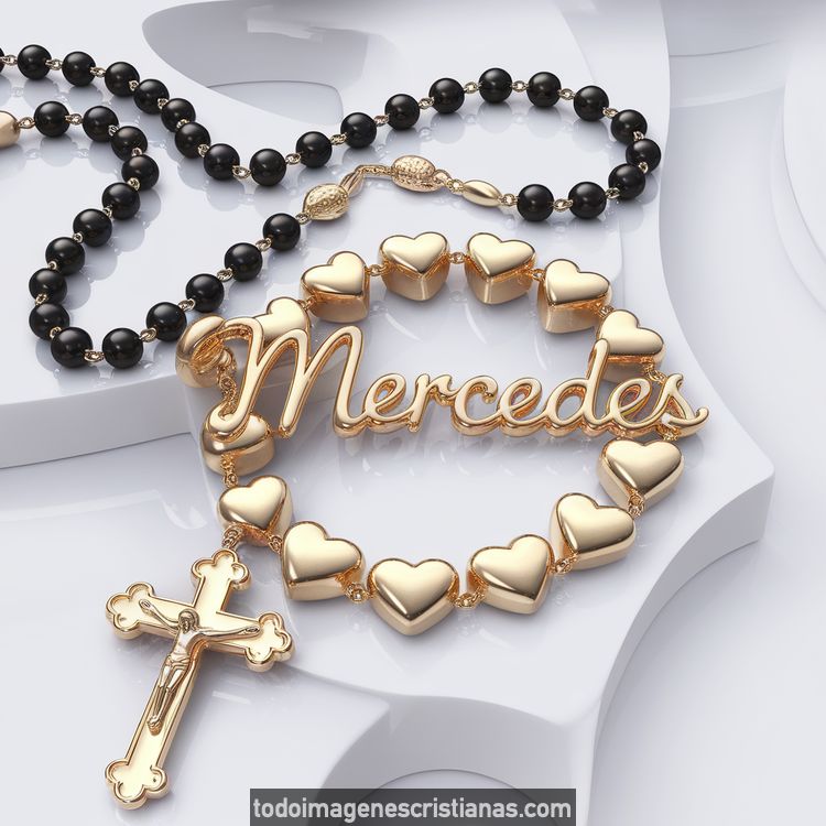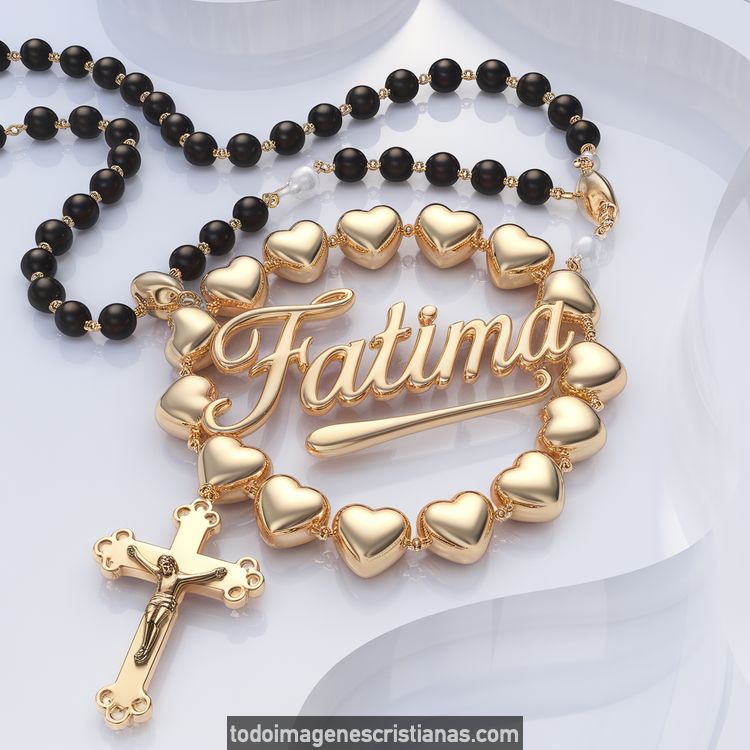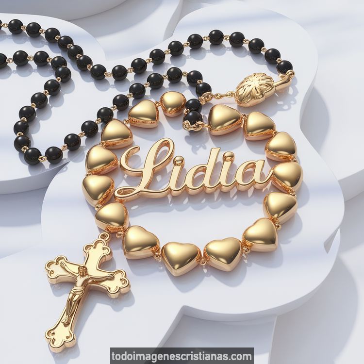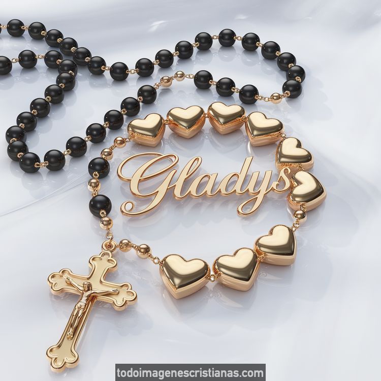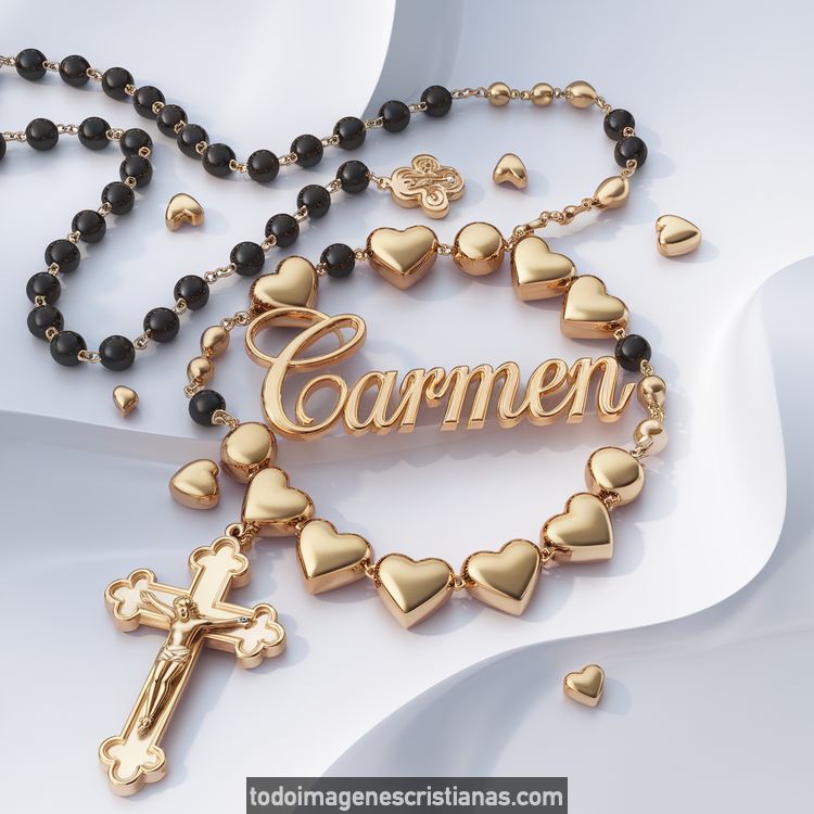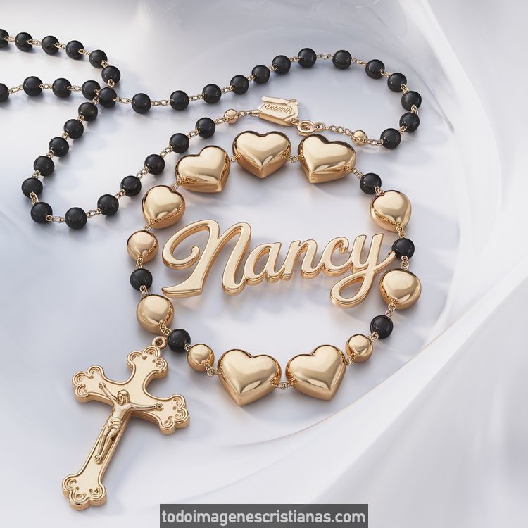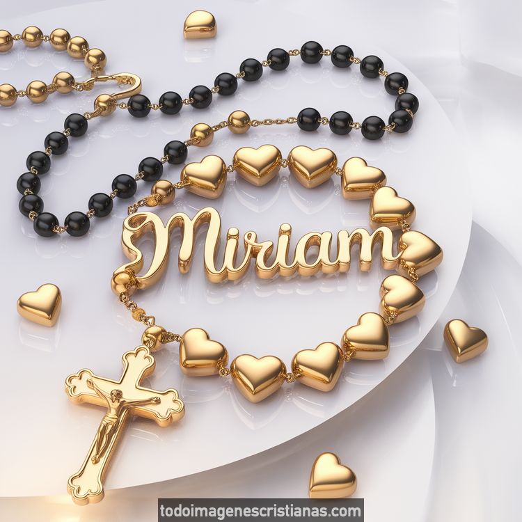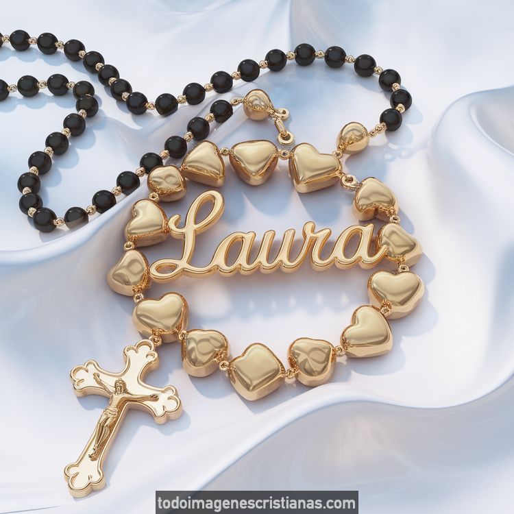 Para más detalles, el diseño consta de un rosario en color negro y dorado, y debajo está el nombre en 3d en color dorado con cuentas y corazones. Esto le da un aspecto muy elegante que seguramente les va a gustar. Los invitamos a que miren la lista de fotos y descarguen su nombre gratis.