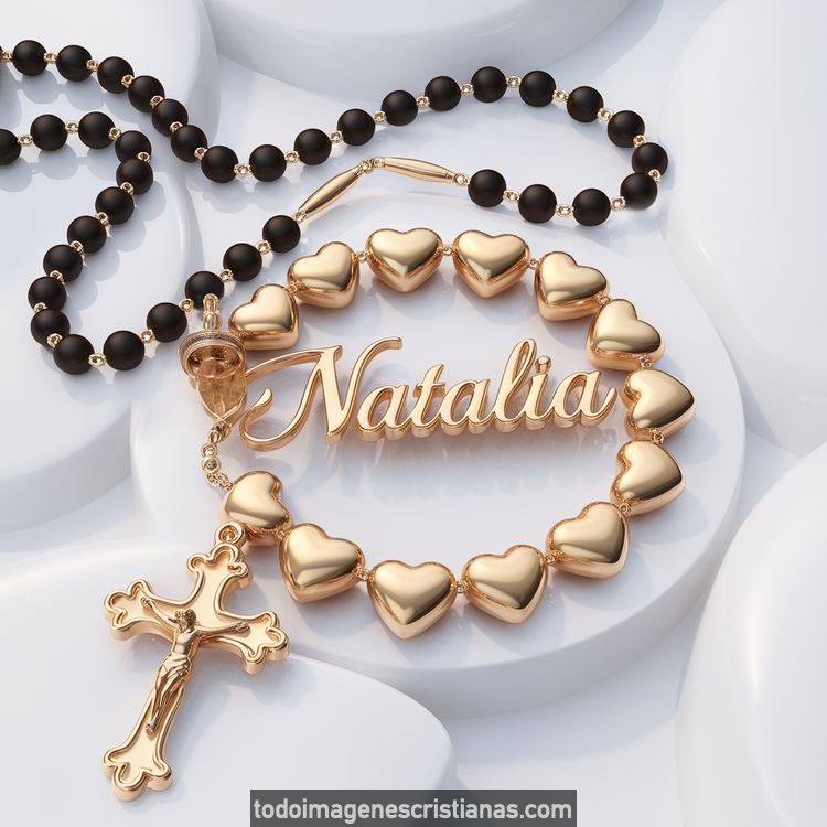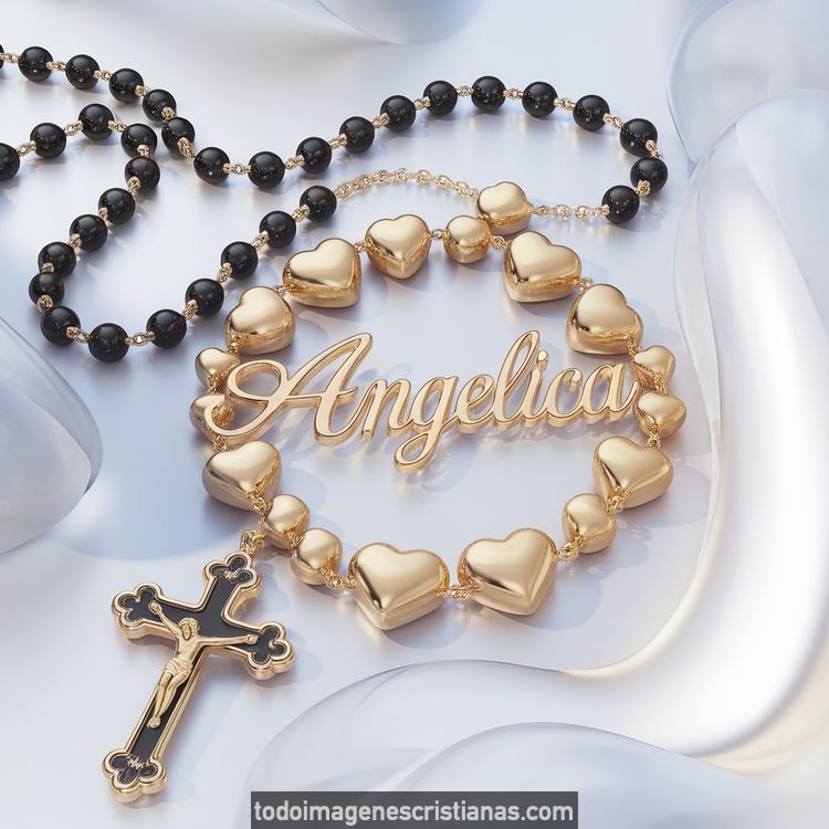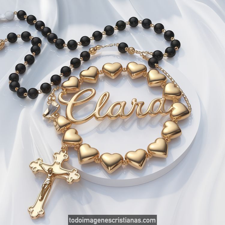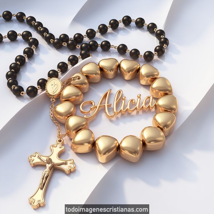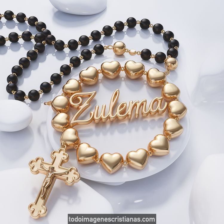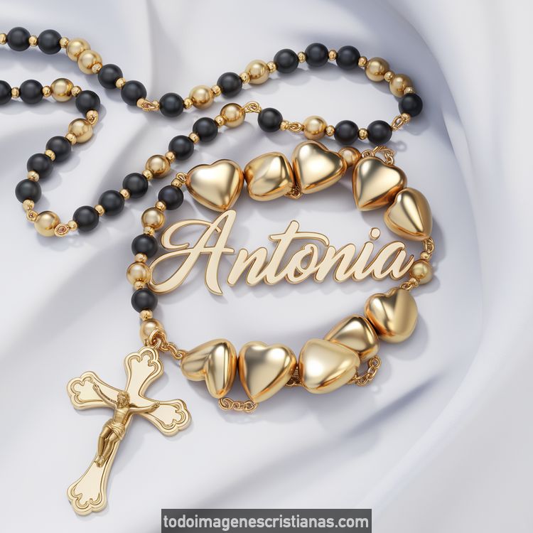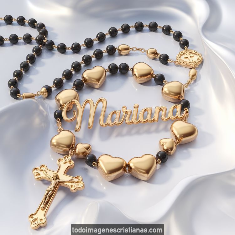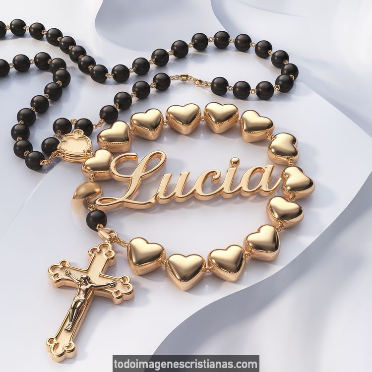 Para más detalles, el diseño consta de un rosario en color negro y dorado, y debajo está el nombre en 3d en color dorado con cuentas y corazones. Esto le da un aspecto muy elegante que seguramente les va a gustar. Los invitamos a que miren la lista de fotos y descarguen su nombre gratis.