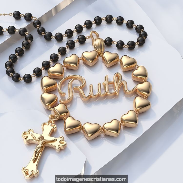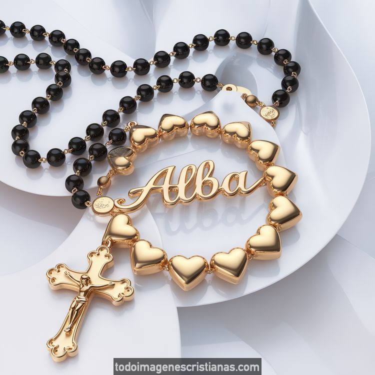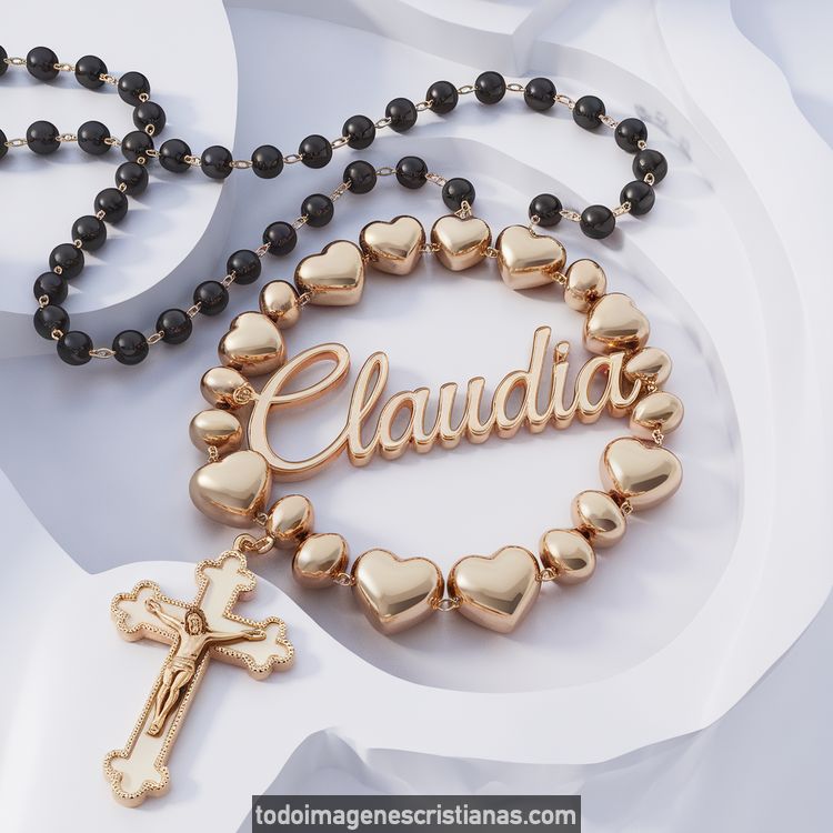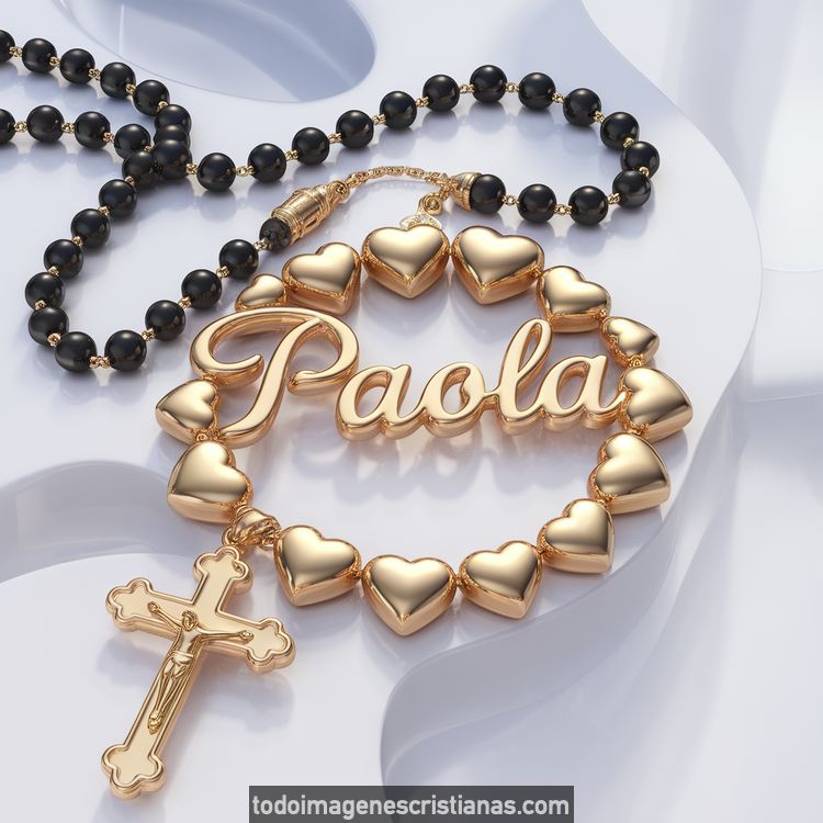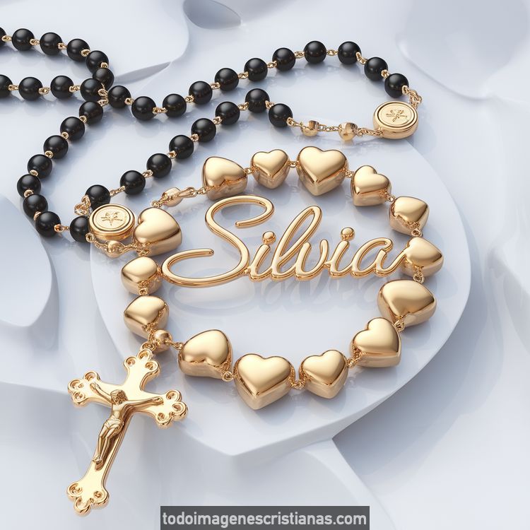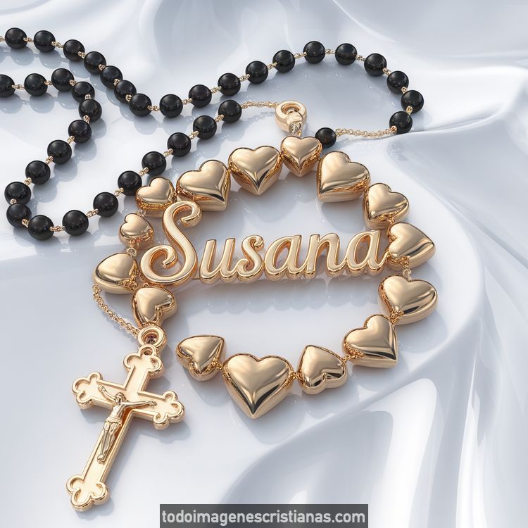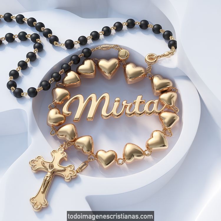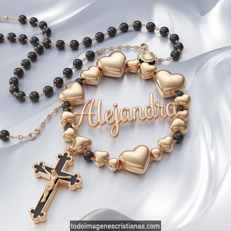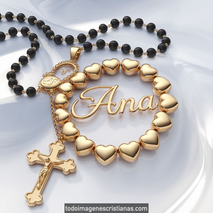Para más detalles, el diseño consta de un rosario en color negro y dorado, y debajo está el nombre en 3d en color dorado con cuentas y corazones. Esto le da un aspecto muy elegante que seguramente les va a gustar. Los invitamos a que miren la lista de fotos y descarguen su nombre gratis.