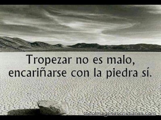 Errar es humano, todos cometemos errores, tropezar no es malo, lo que sí está mal es volver a cometer los errores una y otra vez: "Tropezar no es malo, encariñarse con la piedra sí".