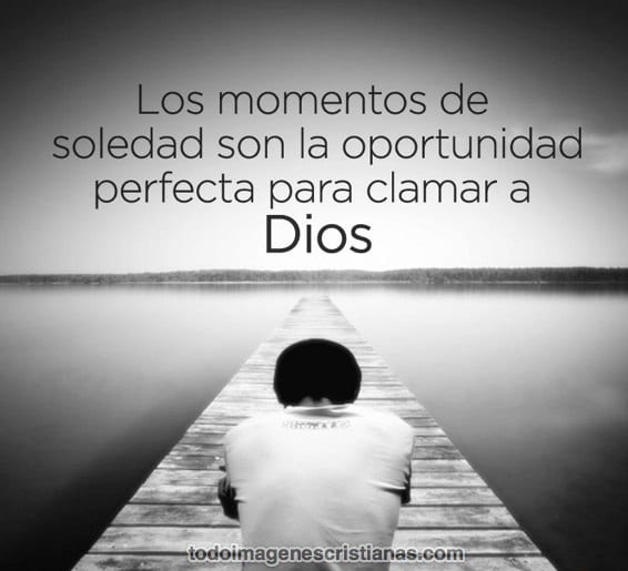Cuando uno está solo es cuando mejor se puede comunicar con Dios, y eso lo resume la siguiente imagen con esta hermosa frase: "Los momentos de soledad son la oportunidad perfecta para clamar a Dios".