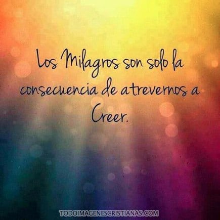 Les dejamos esta nueva imagen cristiana muy colorida que tiene la siguiente frase: "Los milagros son solo la consecuencia de atrevernos a Creer". Esta frase nos desmuestra que siempre hay que creer en Dios pase lo que pase, siempre puede haber lugar para un milagro. AMEN!