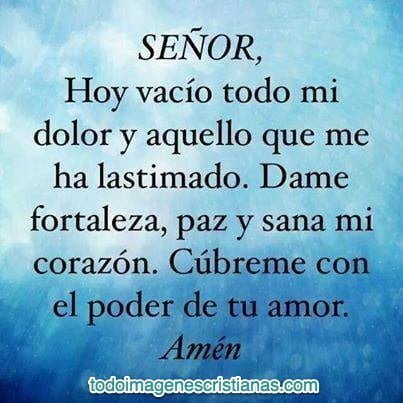 SEÑOR, hoy vacío todo mi dolor y aquello que me ha lastimado. Dame fortaleza, paz y sana mi corazón. Cúbreme con el poder de tu amor. Esa hermosa oración se las dejamos para que descarguen la imagen y la compartan con todos sus amigos en facebook así les desean que el Señor los cubra con su amor.