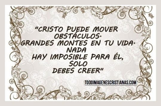 "Cristo puede mover obstáculos, grandes montes en tu vida, nada hay imposible para Él, solo debes creer". Eso es lo que dice la imagen cristiana que les dejamos en esta ocasión. Es una frase muy cierta, para Cristo nada es imposible, pero para que las cosas nos salgan bien, tenemos que creer en Él.