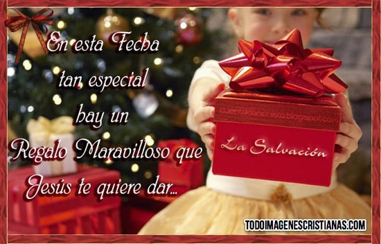 Ya faltan muy pocos días para la navidad y queremos dejarles esta hermosa imagen cristiana con nuestros buenos deseos para ustedes, además de que también pueden usarla para desearle bendiciones a sus seres queridos en estas fiestas. Como pueden ver, en la imagen hay una niña sosteniendo un regalo y una hermosa frase que dice: "En esta fecha tan especial hay un regalo maravilloso que Jesús te quiere dar: LA SALVACIÓN".
