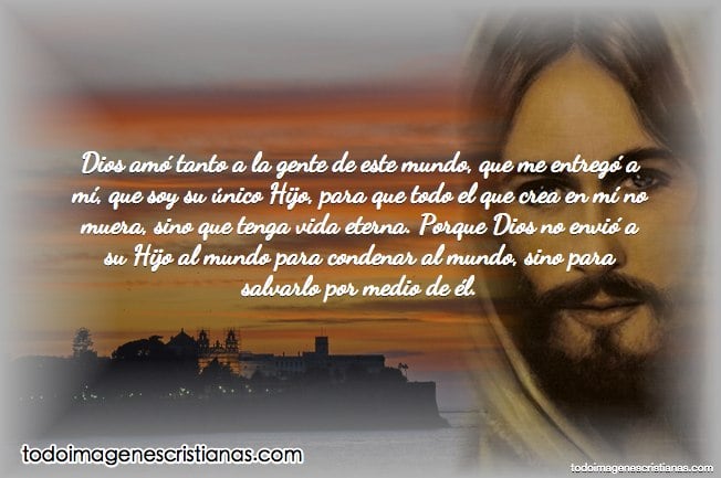Dios amó tanto a la gente de este mundo, que me entregó a mí, que soy su único Hijo, para que todo el que crea en mí no muera, sino que tenga vida eterna. Porque Dios no envió a su Hijo al mundo para condenar al mundo, sino para salvarlo por medio de él.