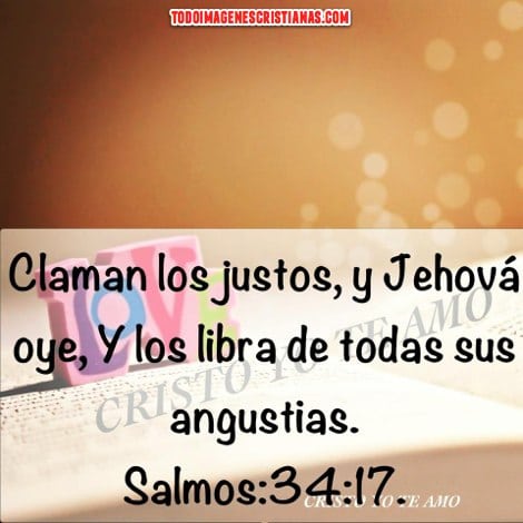 "Claman los justos, y Jehová oye, y los libra de todas sus angustias". Esta frase pertenece a Salmos 34:17 y esperamos que les haya gustado. Si es así descarguen la imagen a su PC y compártanla con quien quieran así la palabra del Señor llegar a más gente. Que Dios los bendiga!