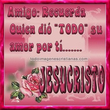 Bellísima imagen cristiana con una frase para recordar siempre... dice "Amigo recuerda quién dio todo su amor por ti, Jesucristo", además está bellamente diseñada y adornada con una rosa. Esperamos que esta imagen te guste, la descargues y utilices en tu muro de Facebook, estamos seguros que a más de un amigo le encantará lo que dice. Bendiciones.