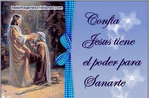 Esta imagen cristiana que les dejamos está dedicada a todas aquellas personas que están atravesando una dura prueba en la cual se vea comprometida su salud... esperamos que Dios los bendiga y tengan confianza que Jesús está junto a ustedes. La bella imagen dice "Confía en Jesús, tiene el poder para sanarte".