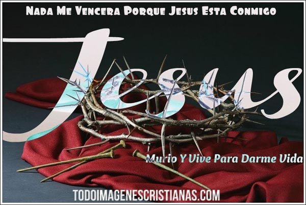 Una nueva imagen aquí en Todo Imágenes Cristianas. En la imagen podemos ver la frase "Nada me vencerá porque Jesús está conmigo. Murió y vice para darme vida". Sin dudas una frase muy linda que nos hace ver que no tenemos que tener miedo porque Dios siempre está con nosotros, en todo momento, siempre nos guiará y sabremos qué hacer.
