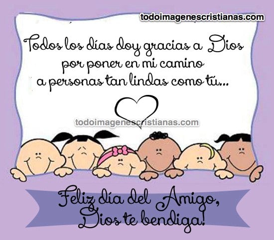 Preciosa imagen cristiana para regalar a todos los amigos en su día, en algunos países el Día del Amigo se celebra el 20 de Junio, mientras que a nivel internacional es el día 30 de Julio. Si te gustaría celebrar algo tan bello como la amistad con tus amigos o amigas, regálales esta preciosa imagen con una frase lindísima sobre este tesoro que Dios nos ha regalado en nuestras vidas, dice "Todos los días, doy gracias a Dios por poner en mi camino a personas tan lindas como tú, felíz día del amigo, que Dios te bendiga!". Descarga y regala en el muro de Facebook de tus amigos!.