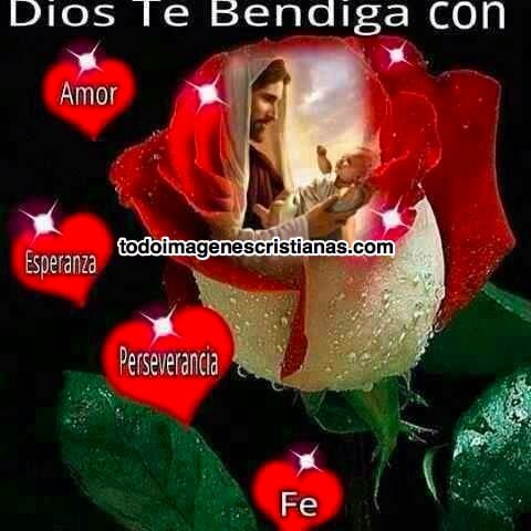 Preciosa imagen cristiana llena de buenos deseos para las personas que queremos, para nuestros amigos, para nuestros conocidos y también para las personas con quienes no nos llevamos bien, pero como buenos hermanos siempre debemos desearle cosas buenas en su vida. La imagen dice "Dios te bendiga con amor, esperanza, perseverancia y fe". Descarga a tu pc la imagen y coloca en tu muro o en el muro de Facebook de tus amigos.