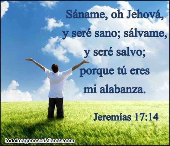 Jeremías 17:14 - Sáname, oh Jehová, y seré sano; sálvame, y seré salvo; porque tú eres mi alabanza.