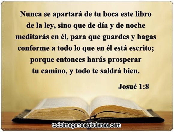 Josué 1:8 Nunca se apartará de tu boca este libro de la ley, sino que de día y de noche meditarás en él, para que guardes y hagas conforme a todo lo que en él está escrito; porque entonces harás prosperar tu camino, y todo te saldrá bien.
