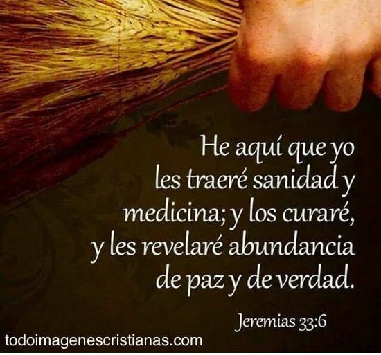 Hay veces que en la vida tenemos que pasar situaciones difíciles en cuanto a enfermedades o problemas de salud, ya sea nuestras o de algún familiar. Uno se desespera porque parece que no hay salida y que la enfermedad nos gana, pero nosotros los cristianos siempre tenemos un aliado, y ese aliado es imbatible, se llama Dios. por eso hoy les queremos dejar esta imagen que tiene una frase que habla justamente de ello, de que el nos traerá salud a nuestras vidas, el nos curará y nos revelará la paz, la abundancia y la verdad.